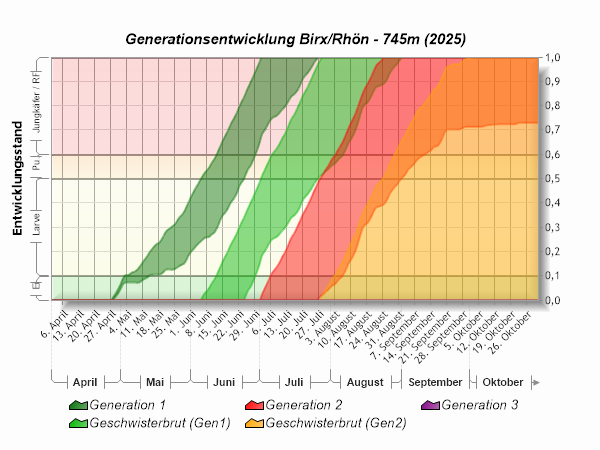 | Hauptflugphase / Befallsbeginn | 28.04.2025 |